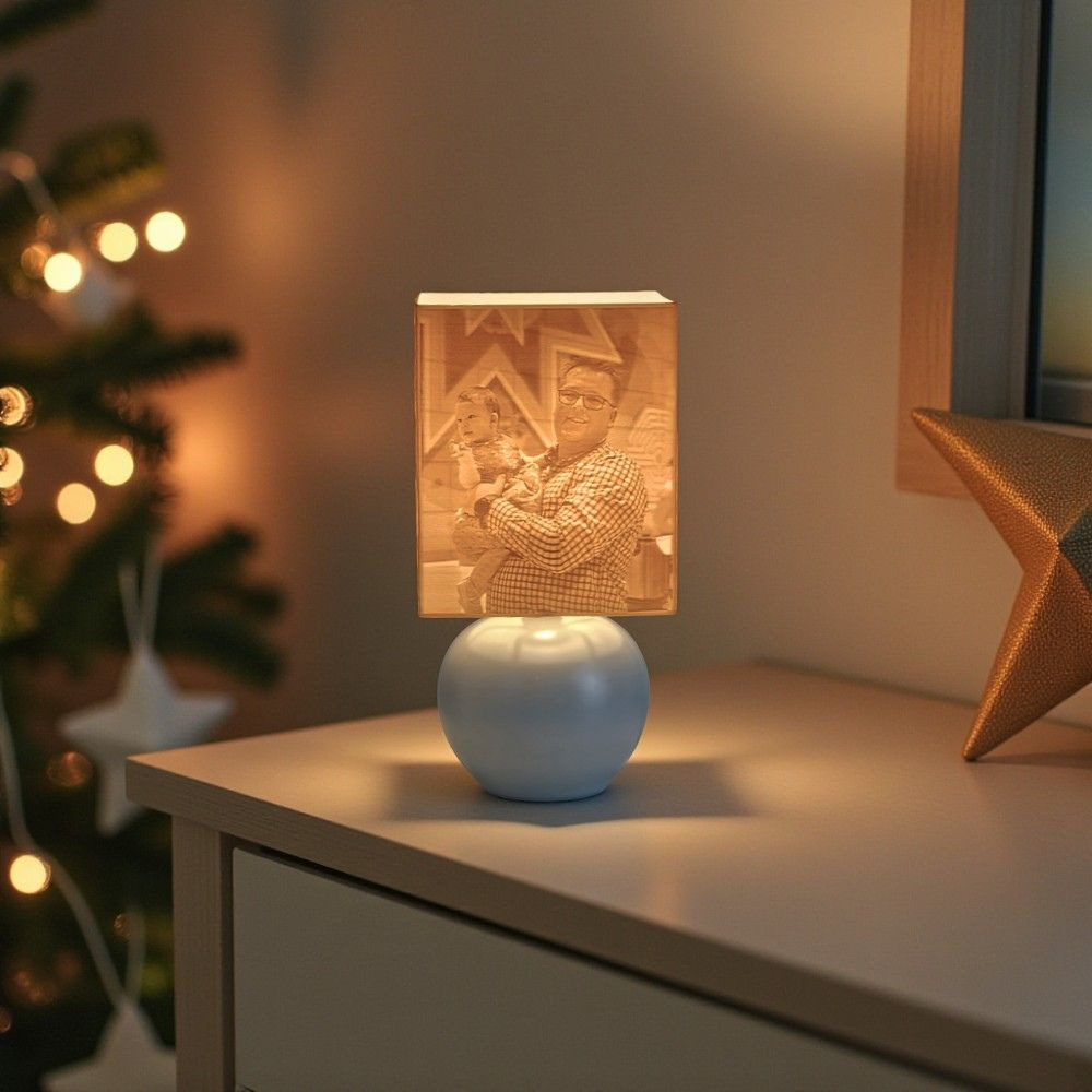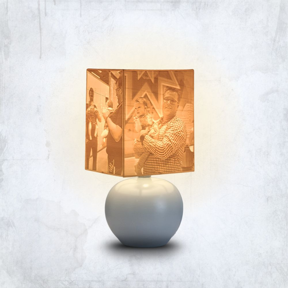 Ez a különleges lámpa nemcsak világít, hanem művészi értéket és személyes jelentést is ad otthonodnak. A fény lágyan szűrődik át a fotóval nyomtatott burán, különleges fény-árnyék játékot vetítve – így minden este meghitt hangulatot teremt.