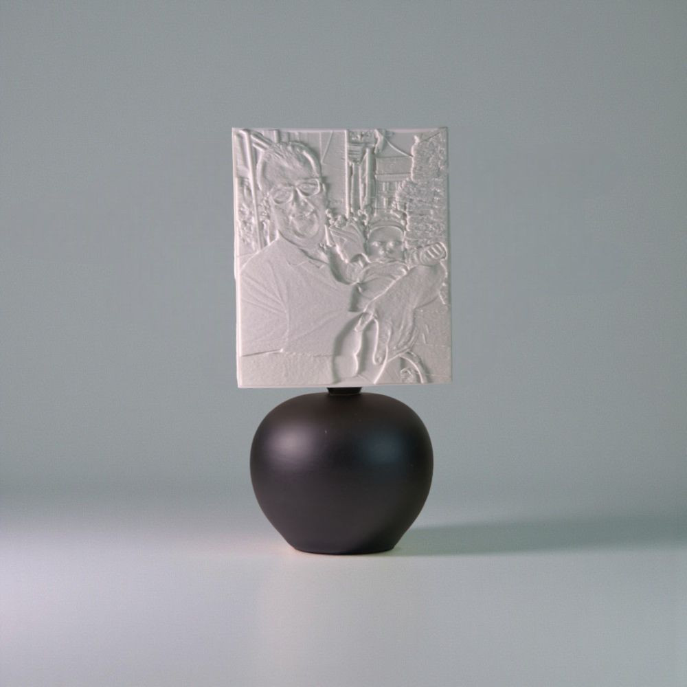 A lámpa ernyője speciális 3D nyomtatással készül PLA alapanyagból, litofán technológiával, amely valódi mélységet és plasztikusságot ad a fényképednek. Ahogy a fény átszűrődik a litofánon, a kép szinte mozgásba lendül – ez a pillanat nem csupán látható, hanem érezhető is.
