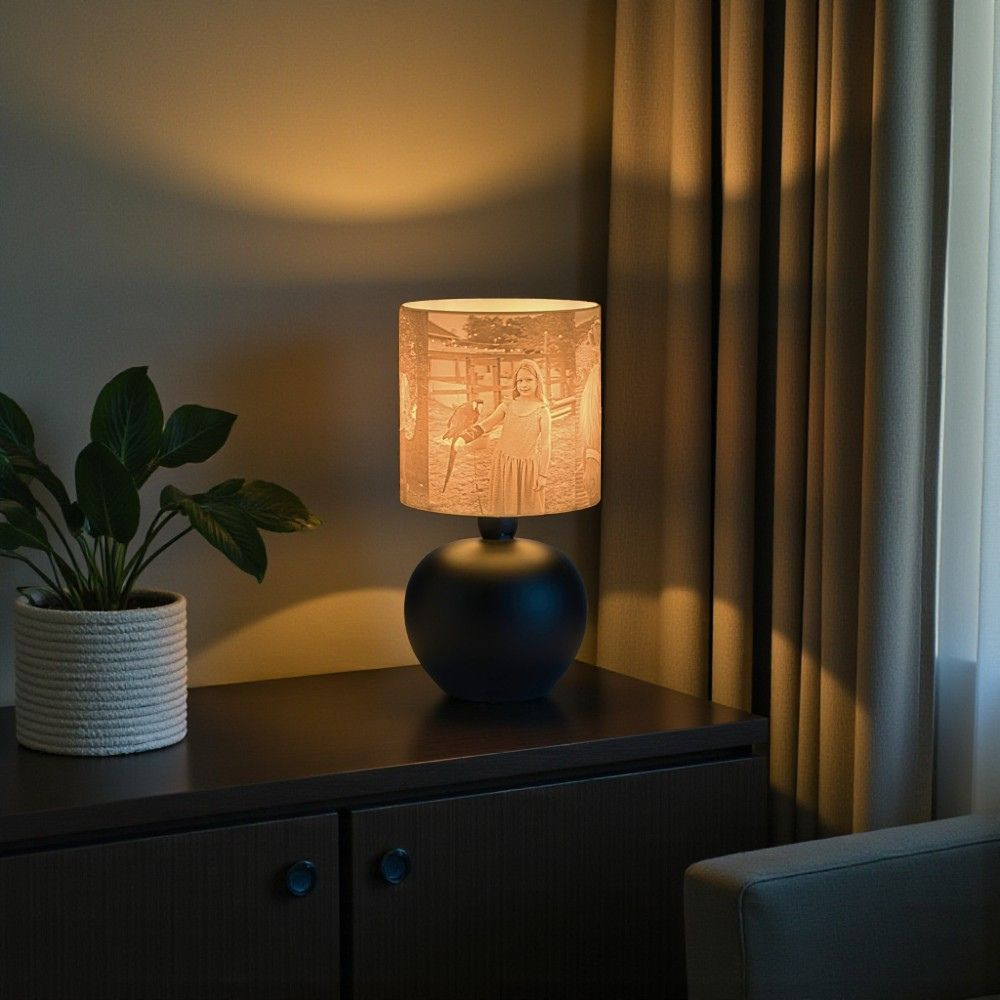 Ez a különleges lámpa nemcsak világít, hanem művészi értéket és személyes jelentést is ad otthonodnak. A fény lágyan szűrődik át a fotóval nyomtatott burán, különleges fény-árnyék játékot vetítve – így minden este meghitt hangulatot teremt.