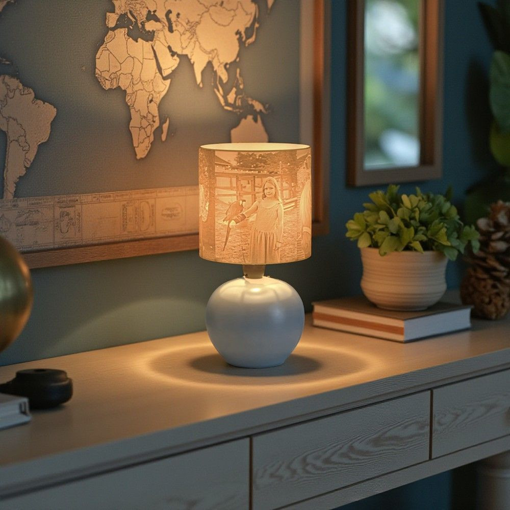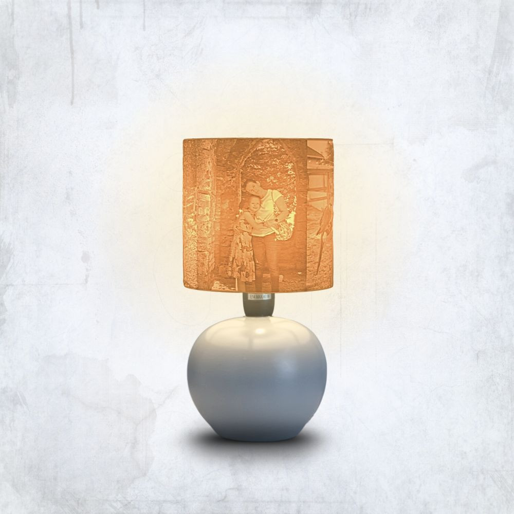 Ez a különleges lámpa nemcsak világít, hanem művészi értéket és személyes jelentést is ad otthonodnak. A fény lágyan szűrődik át a fotóval nyomtatott burán, különleges fény-árnyék játékot vetítve – így minden este meghitt hangulatot teremt.