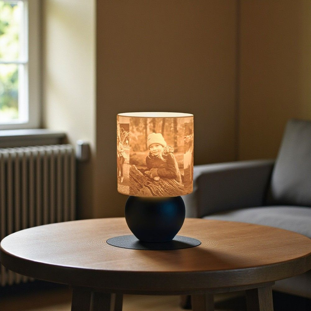 Ez a különleges lámpa nemcsak világít, hanem művészi értéket és személyes jelentést is ad otthonodnak. A fény lágyan szűrődik át a fotóval nyomtatott burán, különleges fény-árnyék játékot vetítve – így minden este meghitt hangulatot teremt.