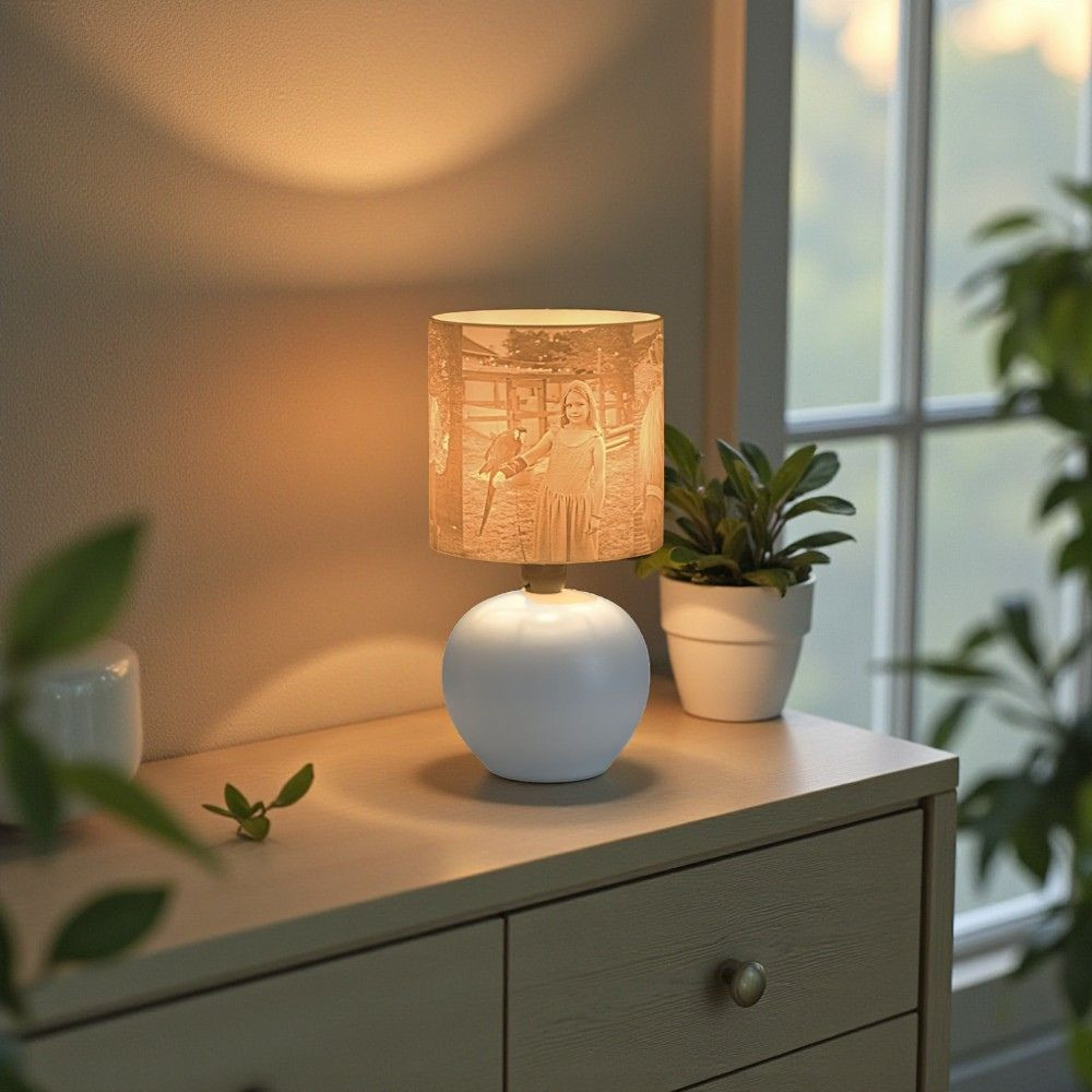 Ez a különleges lámpa nemcsak világít, hanem művészi értéket és személyes jelentést is ad otthonodnak. A fény lágyan szűrődik át a fotóval nyomtatott burán, különleges fény-árnyék játékot vetítve – így minden este meghitt hangulatot teremt.