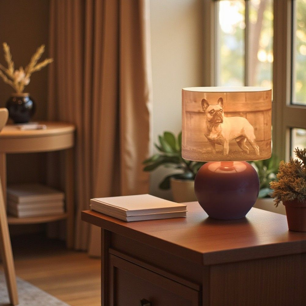 Ez a különleges lámpa nemcsak világít, hanem művészi értéket és személyes jelentést is ad otthonodnak. A fény lágyan szűrődik át a fotóval nyomtatott burán, különleges fény-árnyék játékot vetítve – így minden este meghitt hangulatot teremt.