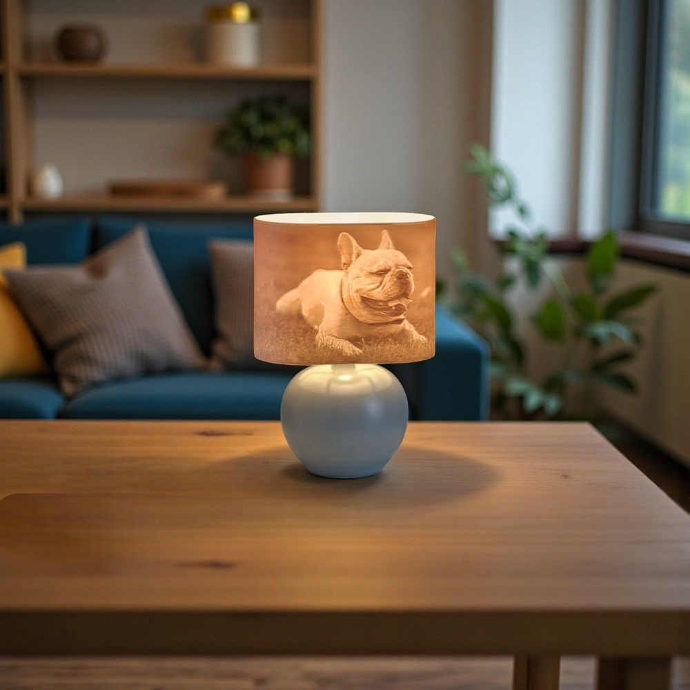 Ez a különleges lámpa nemcsak világít, hanem művészi értéket és személyes jelentést is ad otthonodnak. A fény lágyan szűrődik át a fotóval nyomtatott burán, különleges fény-árnyék játékot vetítve – így minden este meghitt hangulatot teremt.