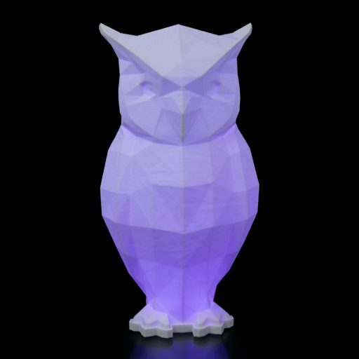 Az Éjjeli Bagoly 3D nyomtatott, geometrikus testével és 7 választható LED színével nemcsak világít, hanem atmoszférát teremt.