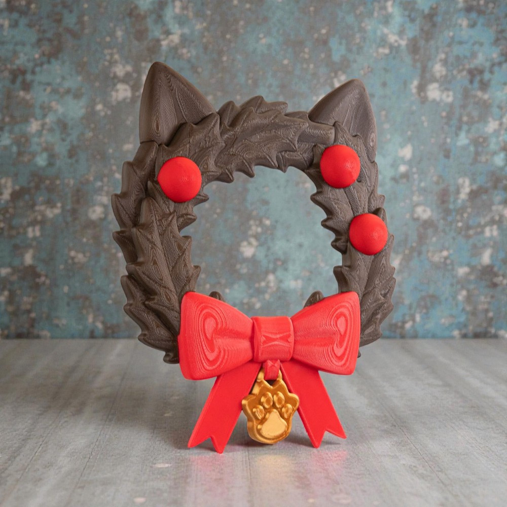• Könnyű és Tartós Anyag: A PLA 3D nyomtatott anyagnak köszönhetően a koszorú könnyű, de rendkívül strapabíró. (Előny: Egyszerű felszerelni, és a cica sem tudja könnyen leszedni, ha hozzáférne!)
