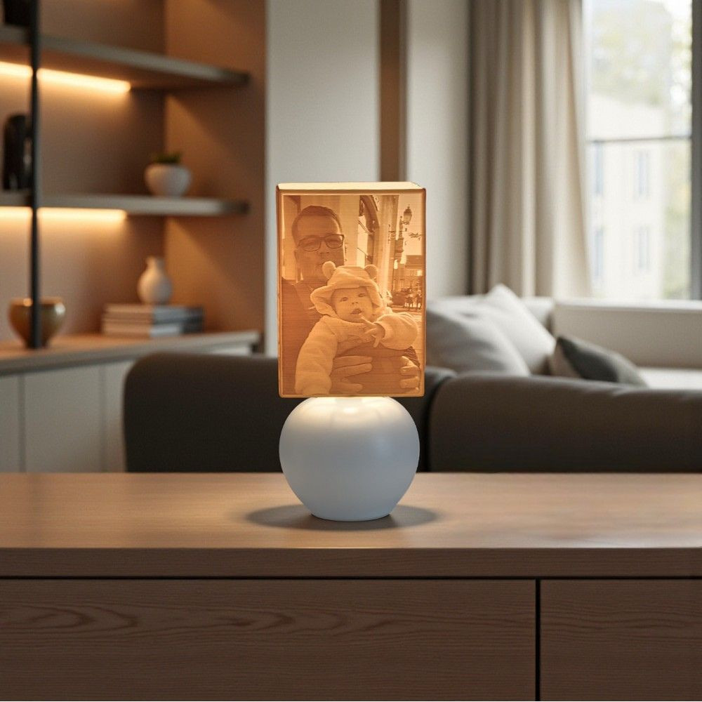 Ez a különleges lámpa nemcsak világít, hanem művészi értéket és személyes jelentést is ad otthonodnak. A fény lágyan szűrődik át a fotóval nyomtatott burán, különleges fény-árnyék játékot vetítve – így minden este meghitt hangulatot teremt.