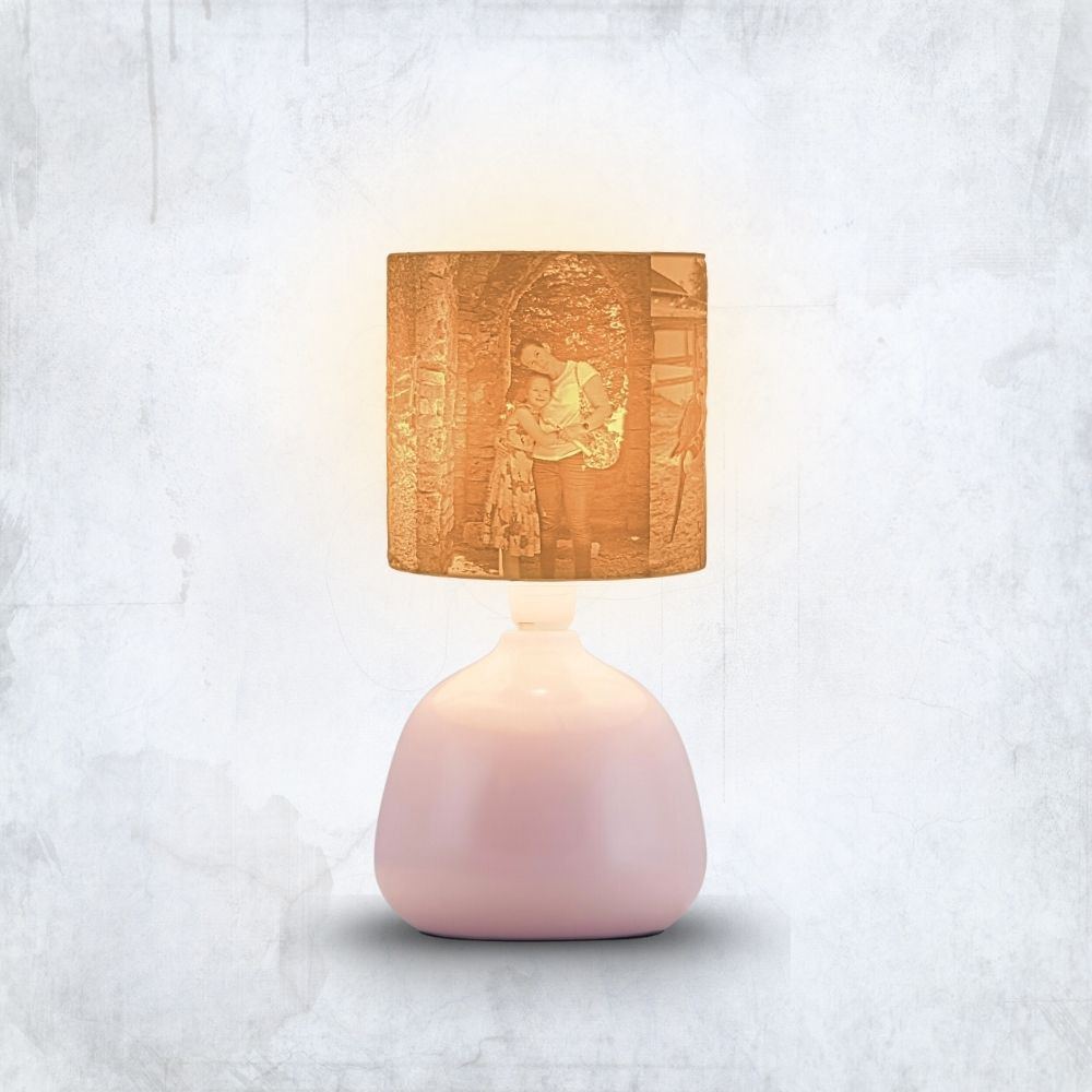 Személyre Szabott Fényképes 3D Lámpa - Egyedi Éjjeli Fény Saját Fotóval - Pink Henger - Ellie