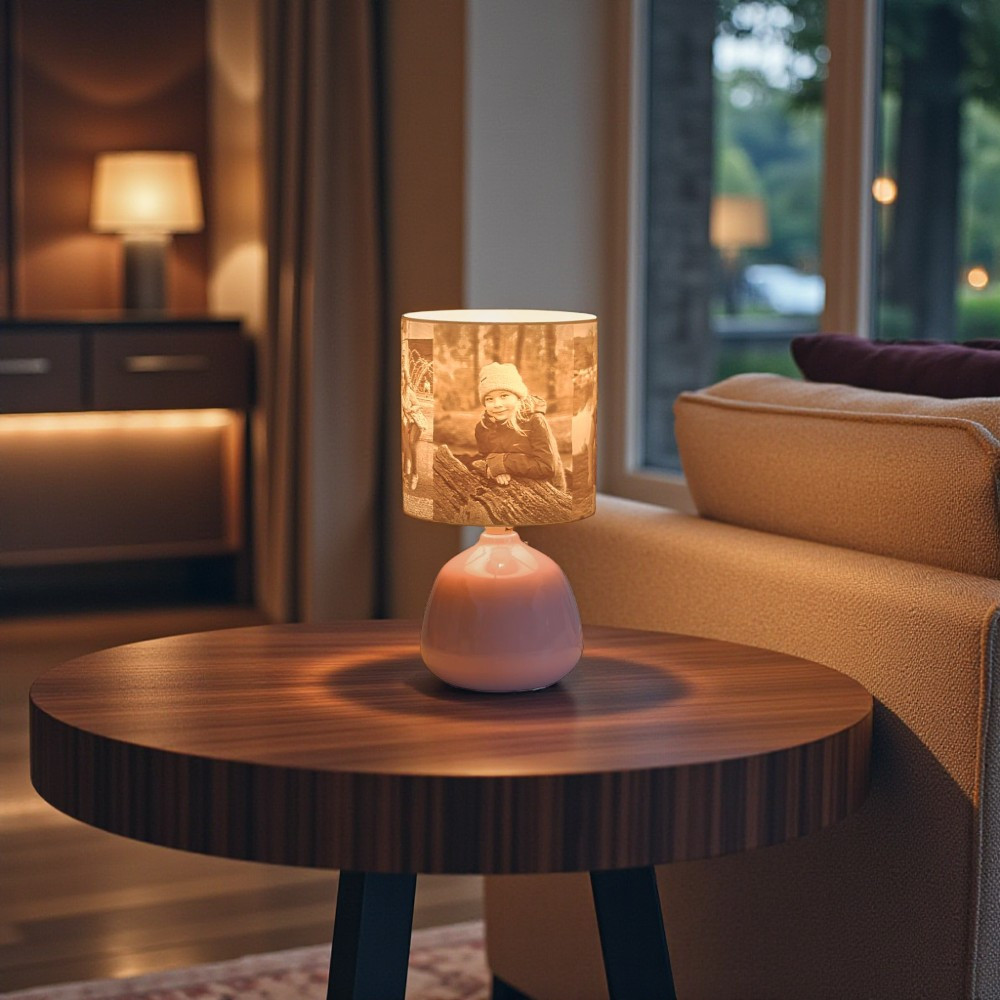 Személyre Szabott Fényképes 3D Lámpa - Egyedi Éjjeli Fény Saját Fotóval - Pink Henger nagy - Ellie