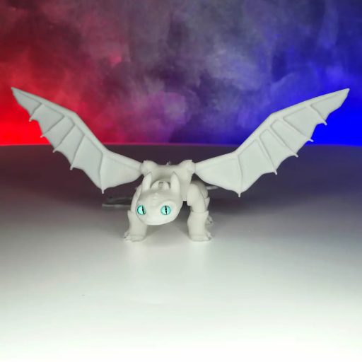 Merülj el a sárkányok varázslatos világában ezzel a gyönyörű Fényfúria figurával! Ez a részletgazdag, 3D-nyomtatott modell nemcsak élethű megjelenésével hódít, hanem flexibilis végtagjaival és szárnyaival is, amelyek mozgathatók, így különféle pózokba állítható.