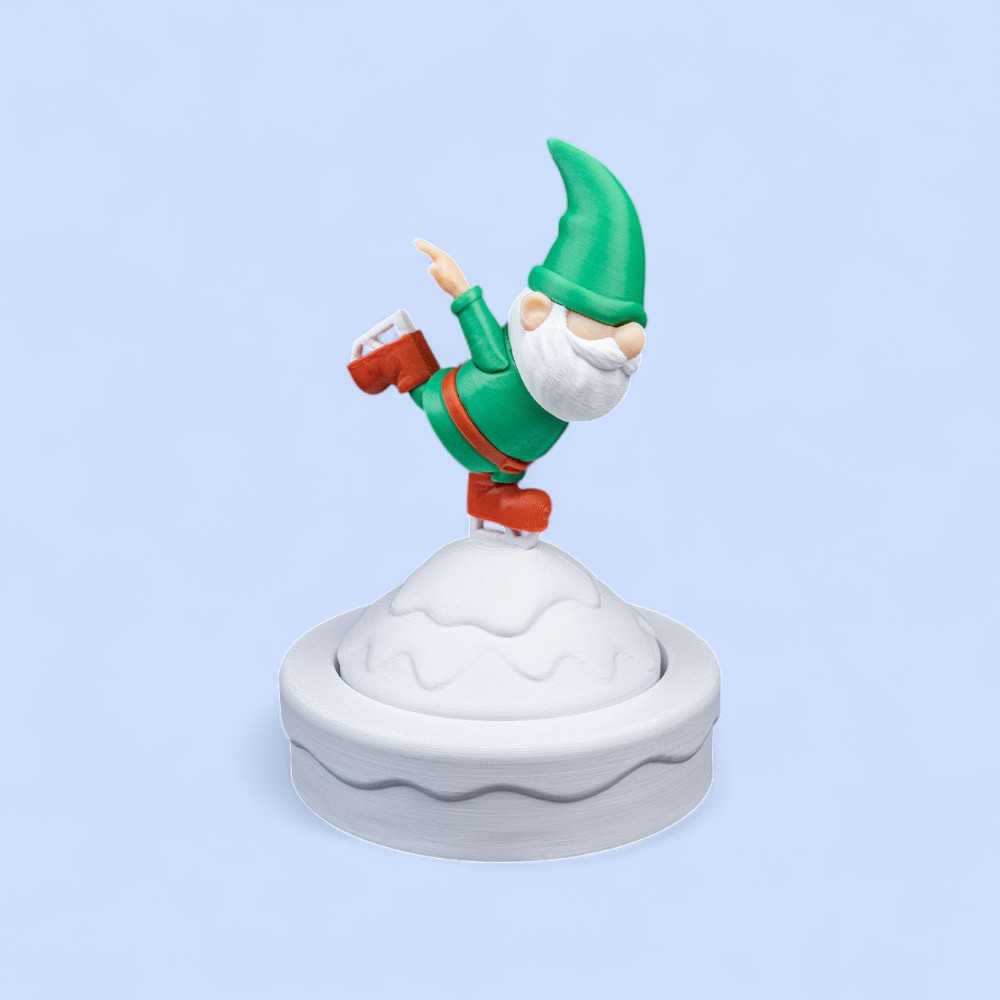 Ez a kis figura nem csak egy manó – egy karácsonyi balerina a jégen! Részletgazdag 3D nyomtatott formája és kedves testtartása minden korosztály arcára mosolyt csal.