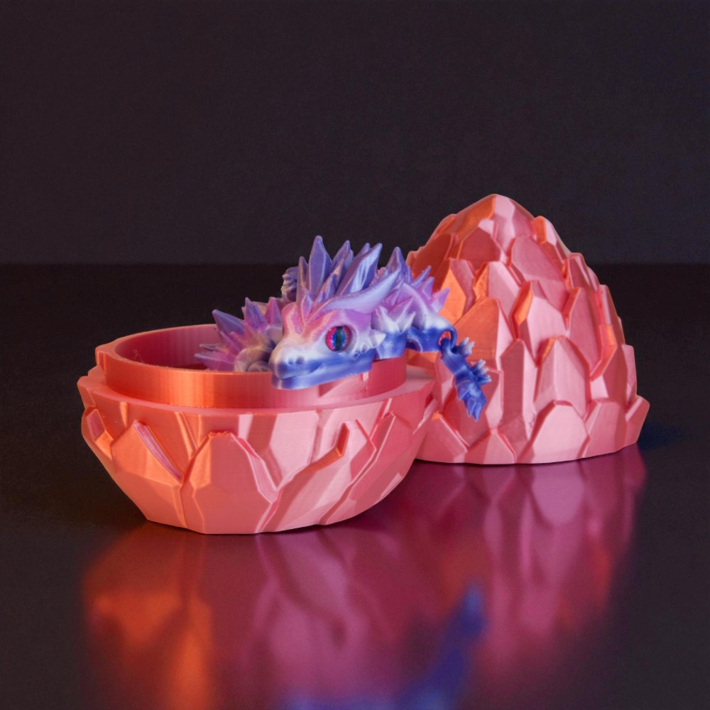 • Sárkány-DNS (Garantált Egyediség): A speciális Silk PLA alapanyag és a gyártási technológia varázsa, hogy nincs két egyforma sárkány. A színátmenet mindig máshova esik. Ezt hívjuk mi Sárkány-DNS-nek: a tiéd mintázata épp olyan megismételhetetlen, mint az ujjlenyomatod.