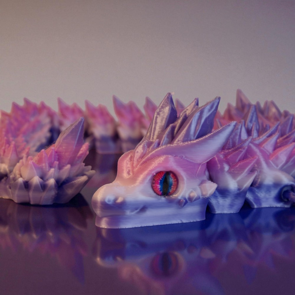 • Sárkány-DNS (Garantált Egyediség): A speciális Silk PLA alapanyag és a gyártási technológia varázsa, hogy nincs két egyforma sárkány. A színátmenet mindig máshova esik. Ezt hívjuk mi Sárkány-DNS-nek: a tiéd mintázata épp olyan megismételhetetlen, mint az ujjlenyomatod.