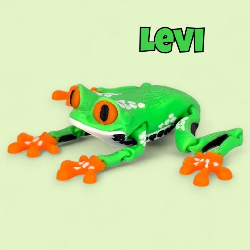 Levi nem az a béka, aki sokáig egy helyben marad. A rugalmas testének köszönhetően igazán életteli, mozgékony benyomást kelt, miközben a vidám, élénkzöld testét és narancssárga tappancsait nem lehet nem imádni. Egy trópusi levelibéka karaktere kelt életre, aki bármelyik polcon, íróasztalon vagy ajándékdobozban jól érzi magát.