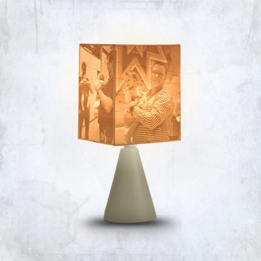 Ez a különleges lámpa nemcsak világít, hanem művészi értéket és személyes jelentést is ad otthonodnak. A fény lágyan szűrődik át a fotóval nyomtatott burán, különleges fény-árnyék játékot vetítve – így minden este meghitt hangulatot teremt.