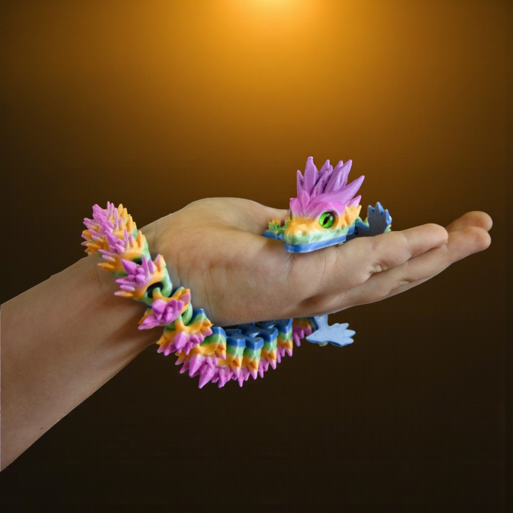 Képzeld el, hogy van egy őrződ, aki némán figyeli a munkádat, és megnyugtat, amikor a stressz eluralkodna rajtad. A Szivárvány Kristálysárkány nem csupán egy 3D nyomtatott figura, hanem egy lenyűgöző, 37 cm hosszú műalkotás, ami szinte életre kel a kezeid között.