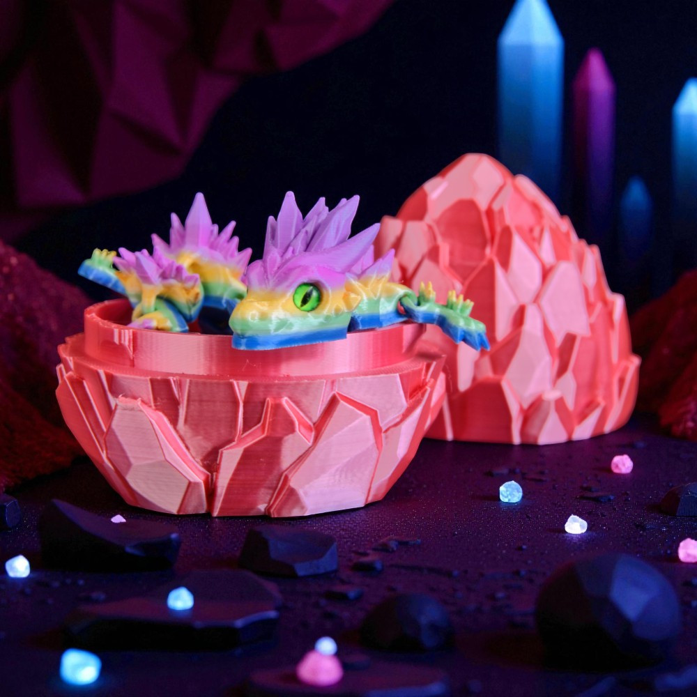 • Sárkány-DNS (Garantált Egyediség): A speciális Silk PLA alapanyag és a gyártási technológia varázsa, hogy nincs két egyforma sárkány. A színátmenet mindig máshova esik. Ezt hívjuk mi Sárkány-DNS-nek: a tiéd mintázata épp olyan megismételhetetlen, mint az ujjlenyomatod.