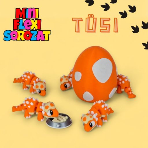 A pettyes tojás és a csontostál nem csak kiegészítők – segítenek életre kelteni Tüsi világát. A tojás kb. 11 cm magas, élénk narancssárga alapon világos pettyekkel, míg a kis tálban egy falat csontos finomság várja a kis dinót. Együtt egy egész mini jelenetet alkotnak!