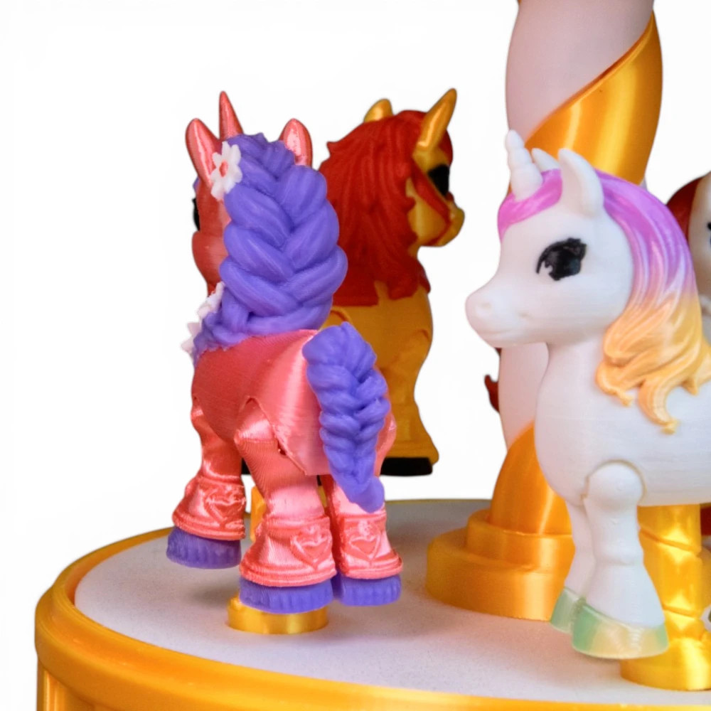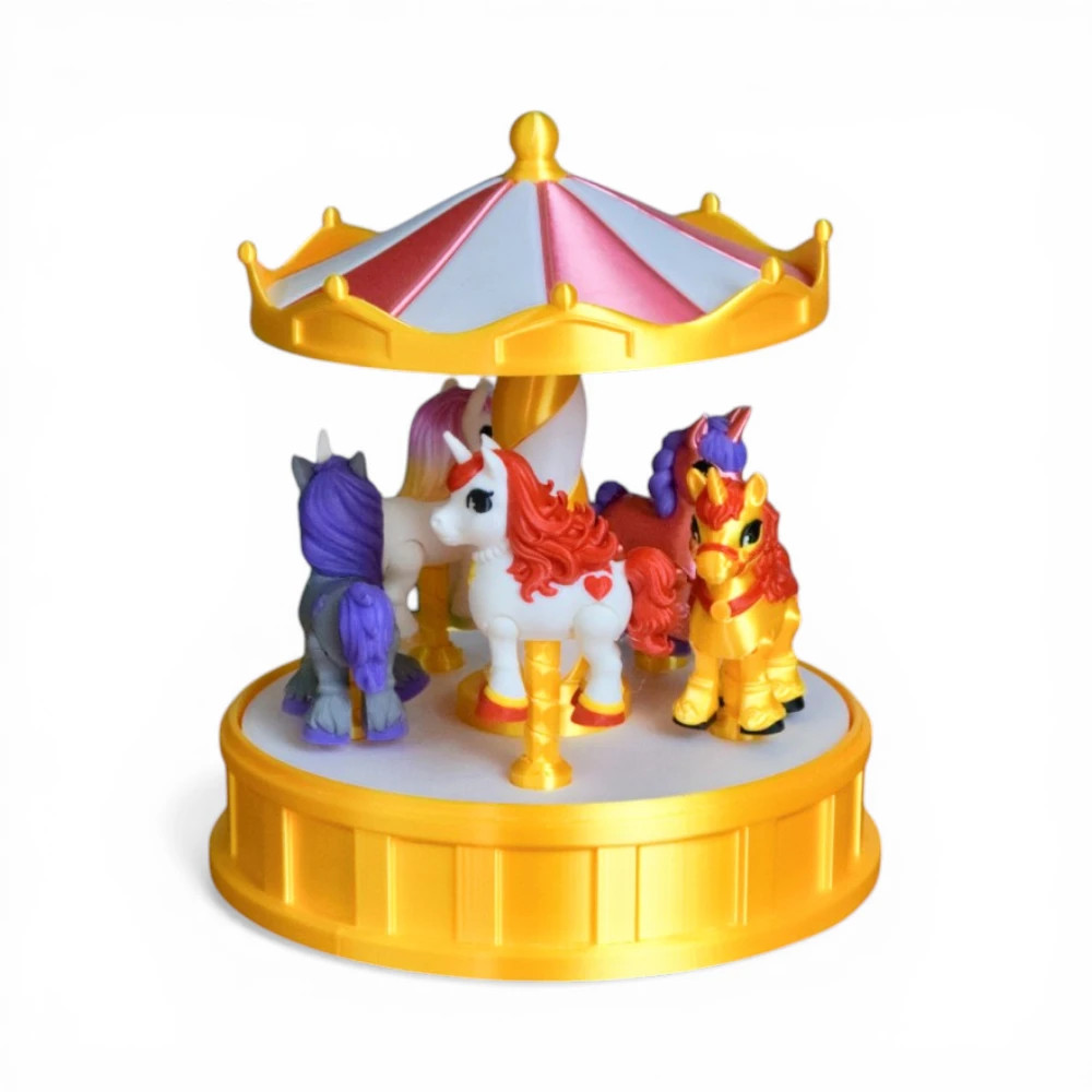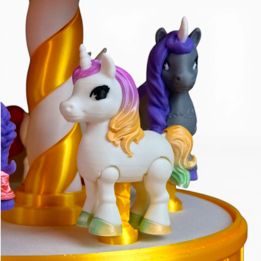 Varázslatos unikornis körhinta – forgatható asztali dísz és gyűjtői állvány 5 figurával